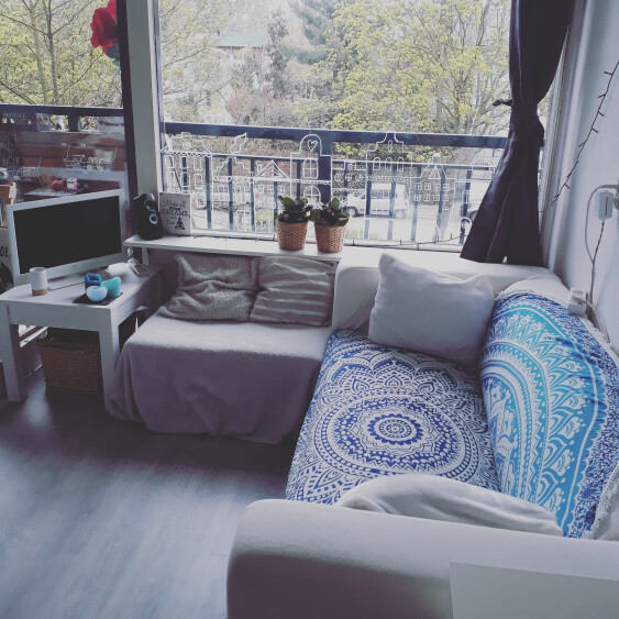 • De keuken, woonkamer, wasmachine en droger deel je samen met 7 gezellige ganggenoten